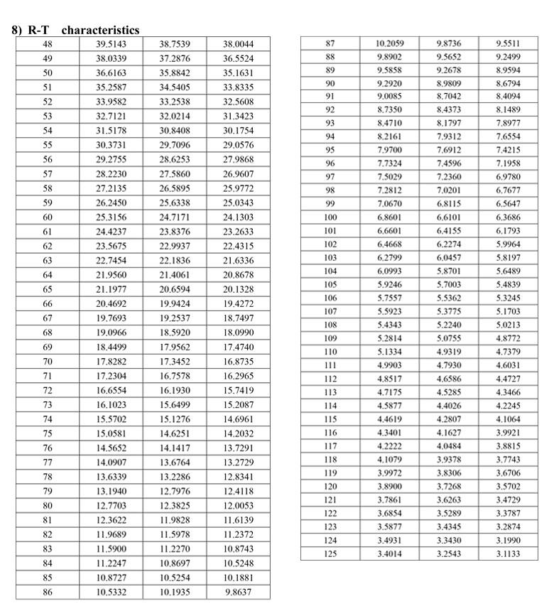 100kΩ 熱敏電阻阻值與溫度對(duì)照表