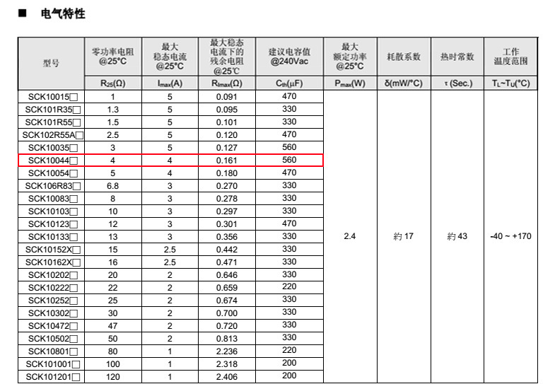熱敏電阻型號: