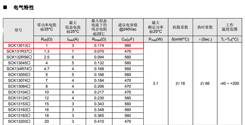 熱敏電阻型號: