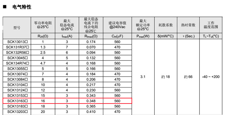 熱敏電阻型號(hào):