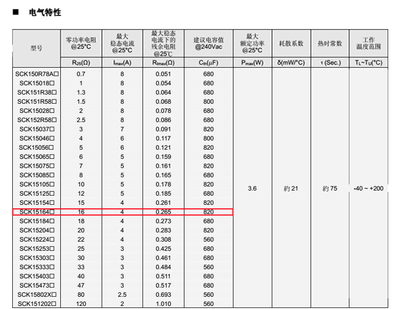 熱敏電阻: 穩(wěn)騰 熱敏電阻型號: SCK15164MSY 熱敏電阻片徑: Φ15mm 零功率電阻@25℃: 15Ω 工作溫度范圍: -40℃±200℃ 儲存溫度范圍: -40℃±85℃
