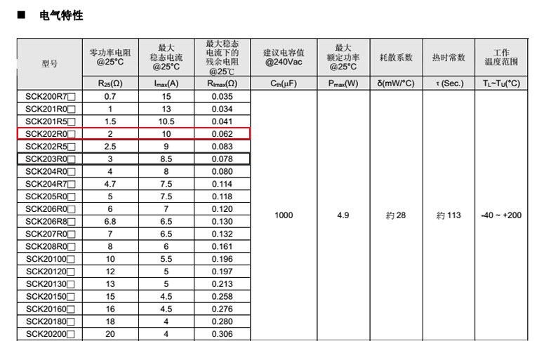 熱敏電阻: 穩(wěn)騰 熱敏電阻型號: SCK202R0MSBY 熱敏電阻片徑: Φ20mm 零功率電阻@25℃: 2Ω 工作溫度范圍: -40℃±200℃ 儲存溫度范圍: -40℃±85℃