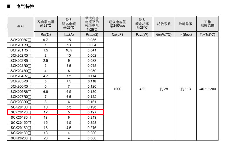 熱敏電阻: 穩(wěn)騰 熱敏電阻型號: SCK20120MSY 熱敏電阻片徑: Φ20mm 零功率電阻@25℃: 12Ω 工作溫度范圍: -40℃±200℃ 儲存溫度范圍: -40℃±85℃