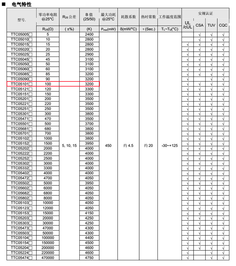 熱敏電阻型號: