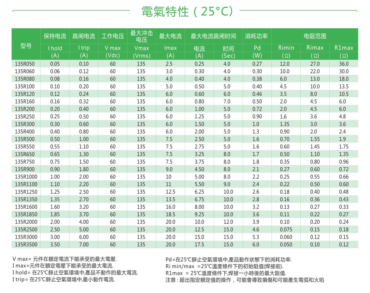 135R自恢復(fù)插件PPTC熱敏電阻
